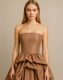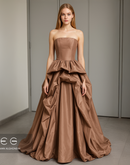 يمنحك هذا الفستان البني المسائي مظهراً أنيقاً ومحتشماً في نفس الوقت.