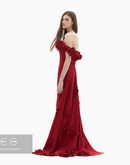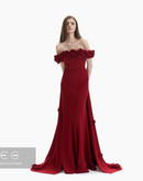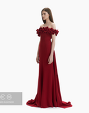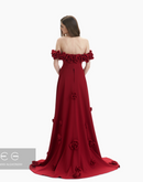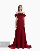 فستان أحمر أنيق وعصري مزين بتصميم زهور حمراء، يجمع بين الرقي والجرأة.