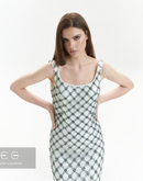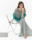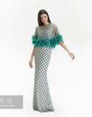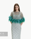 Dress code / EGNFD2 A sophisticated white dress featuring green feather details and luxurious embroidery. It is the perfect choice for high-end occasions and elegant parties. It is embroidered with natural crystal...
