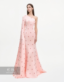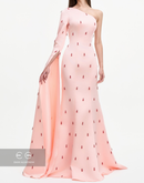 A pink long-sleeved dress that combines classic and modern beauty in an elegant style. It is the perfect choice for occasions.