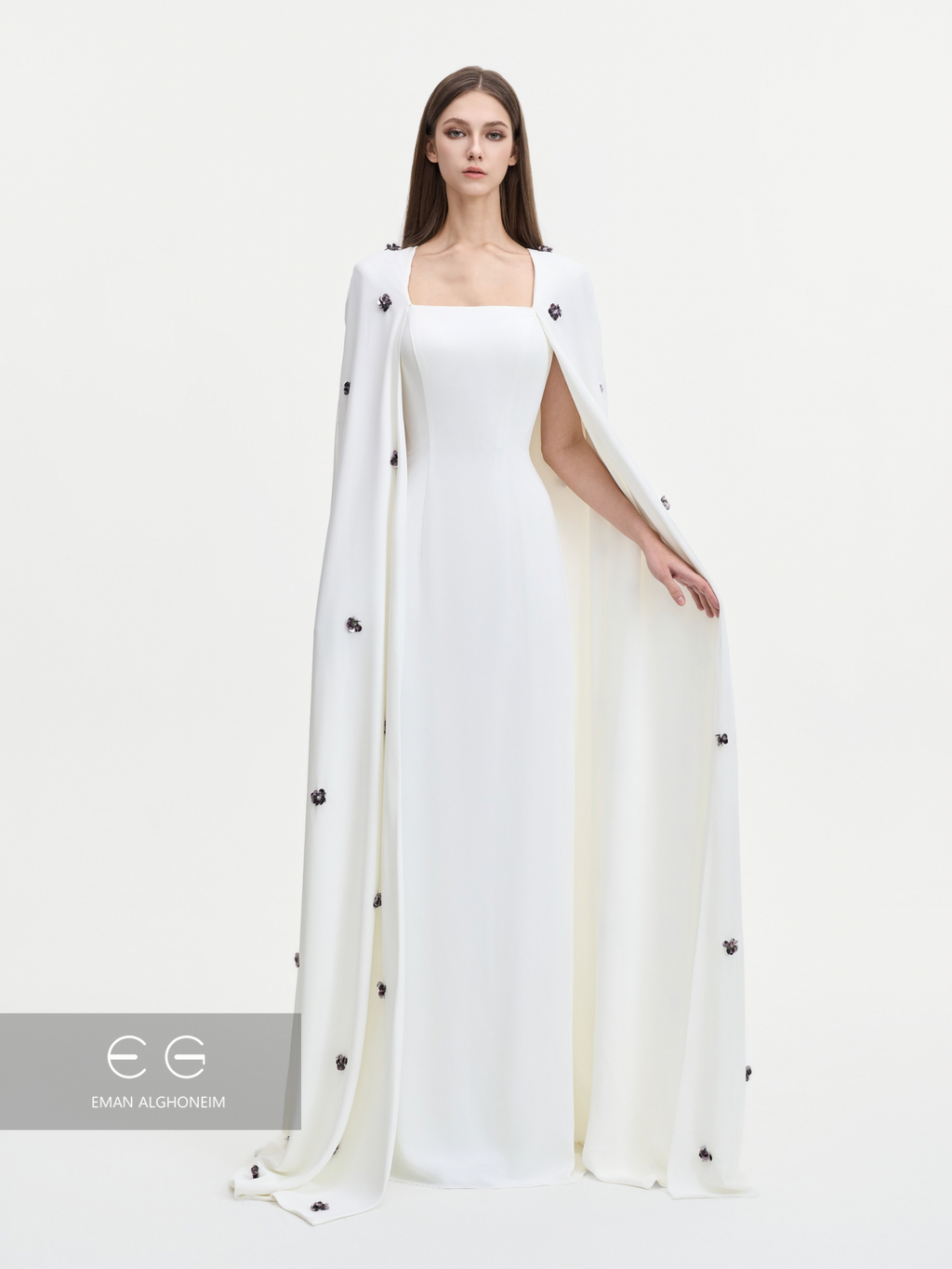 Maroon with maroon and black beads Elegant off-shoulder dress in a soft Maroon embellished with delicate maroon and black beads for a touch of luxury. Made from smooth and flowy...